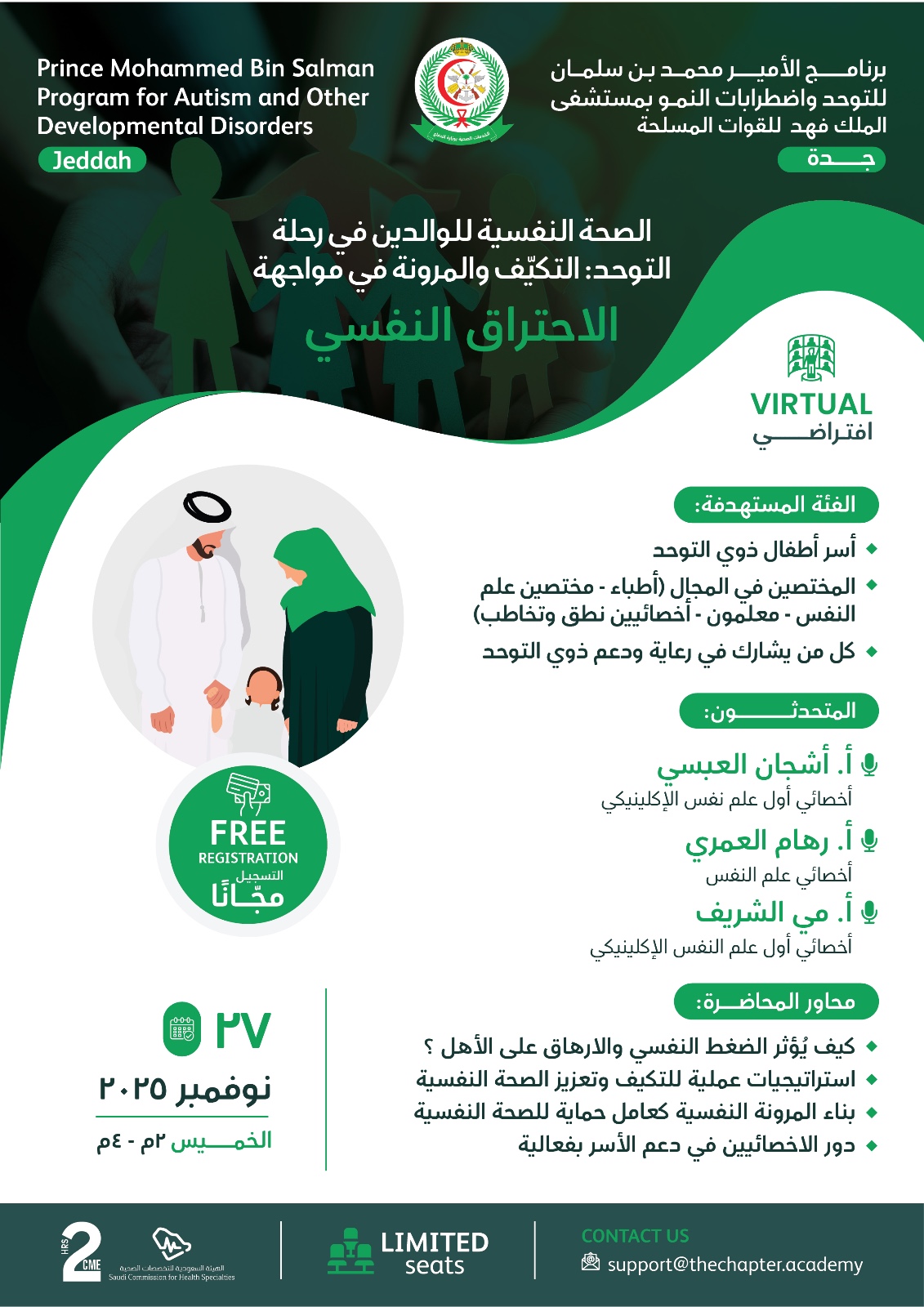 CME 2 التاريخ 27 نوفمبر الفئة المستهدفة اسر اطفال التوحد وكل من يشارك في دعم ورعاية ذوي التوحد والمتخصين في المجال افتراضي افتراضي عبر تطبيق زووم